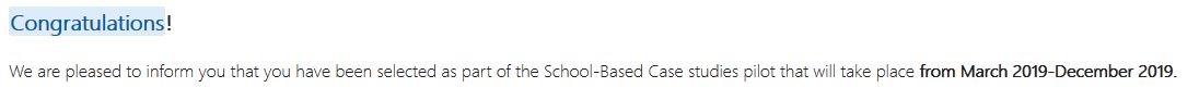 I have the honor to write that I have been selected in School Base Case Studies project.